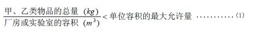 单位容积的最大允许量是实验室或非甲、、、乙类厂房内使用甲、、、、乙类火灾危险性物品的两个控制指标之一。。。实验室或非甲、、乙类厂房内使用甲、、、、乙类火灾危险性物品的总量同其室内容积之比应小于此值。。。即: