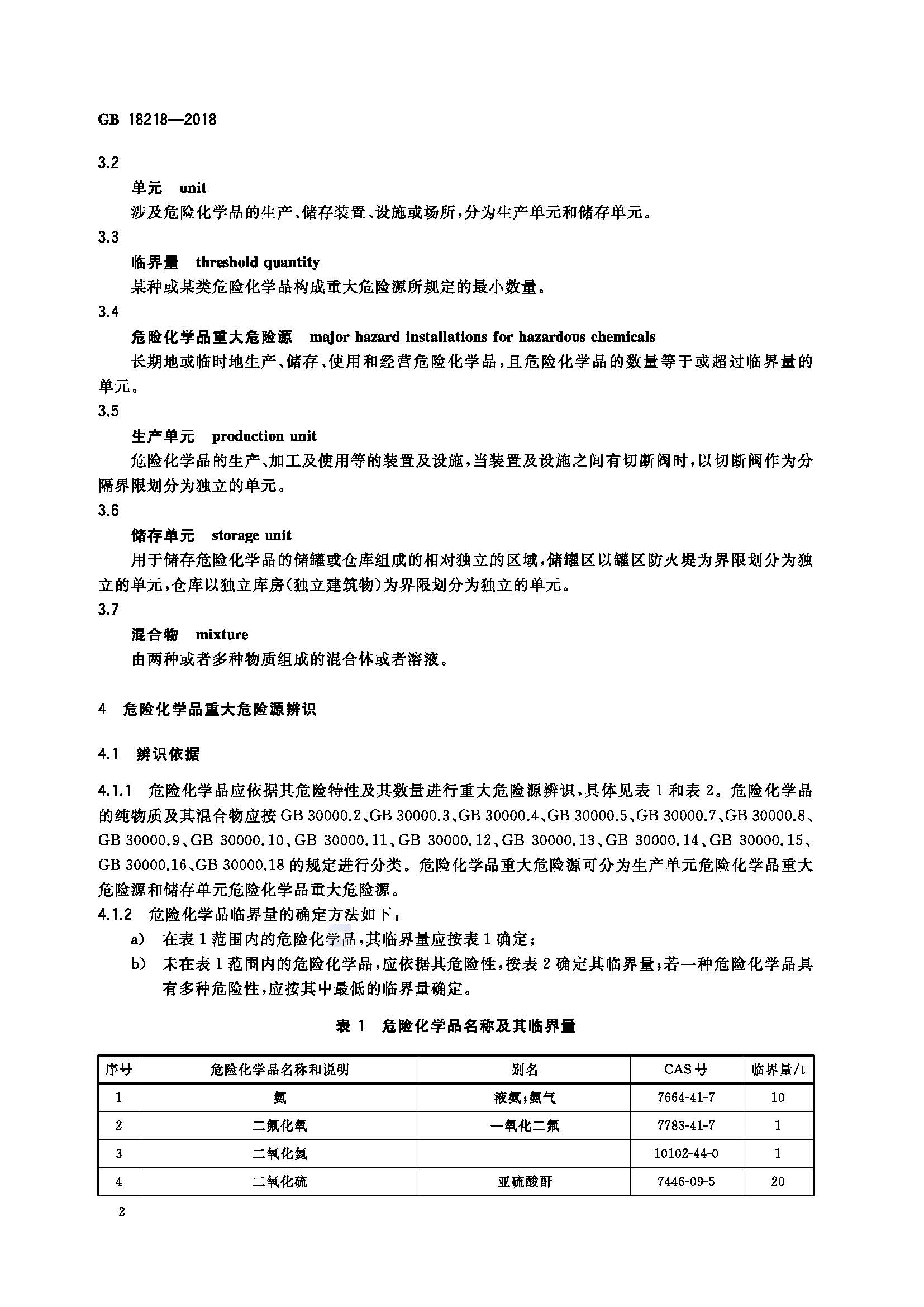 GB 18218-2018 危险化学品重大危险源辨识(2019-3-1实施)